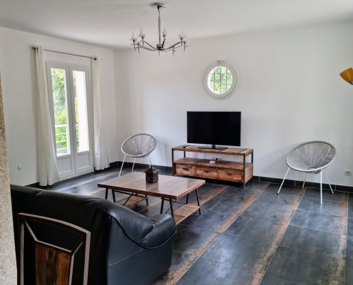 La villa San Ghjacumu est une villa mitoyenne charmante de standing de 113m², toute équipée, conçue pour une à six personnes, donnant une vue sur une partie du jardin. Une chambre en rez-de-chaussée et deux autres à l’étage vous y attendent.